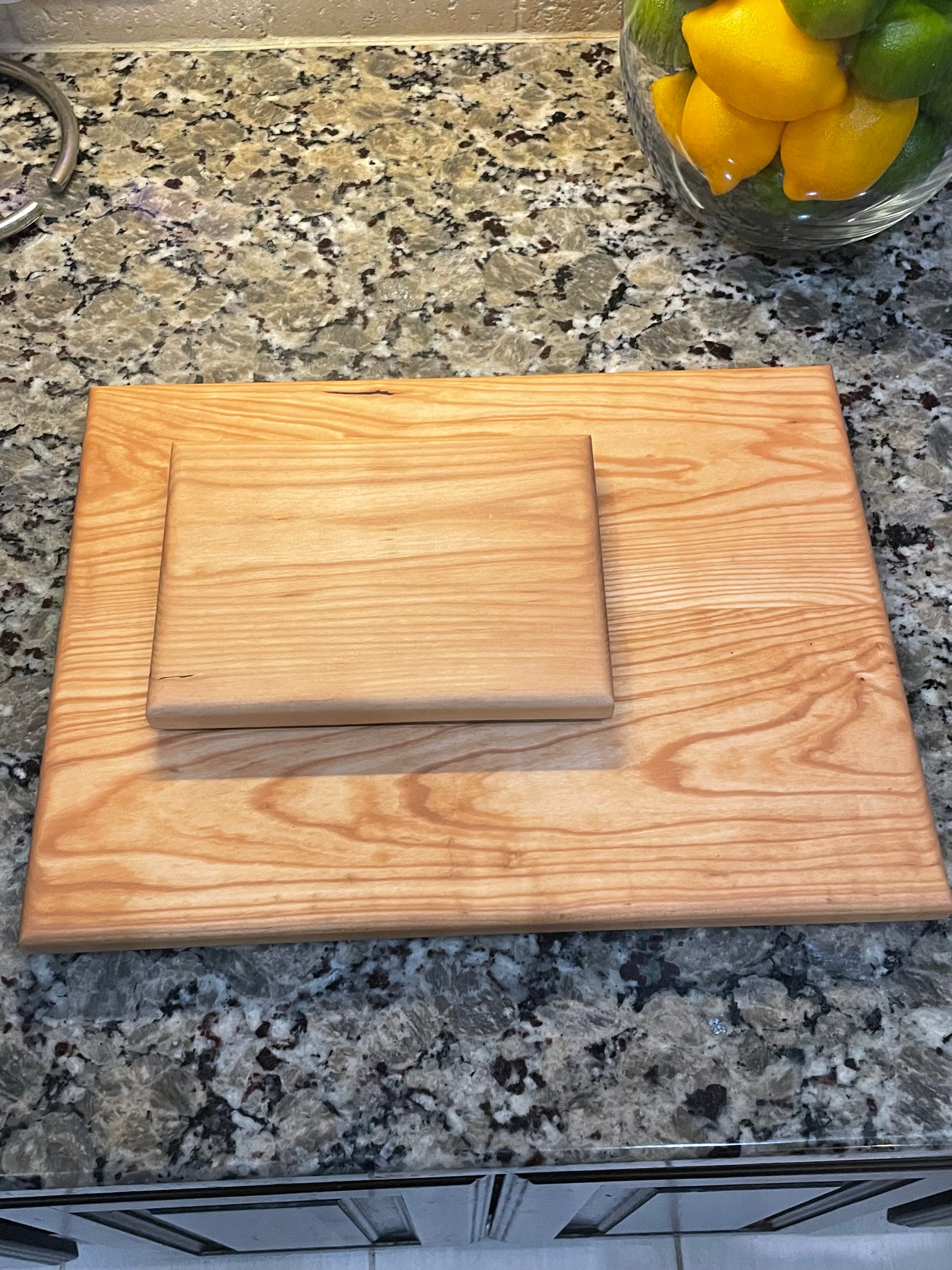 This maple board set is great if you're looking to add a bit of character to your kitchen without breaking the bank. This board set, includes two boards:, both boards have rubber feet.